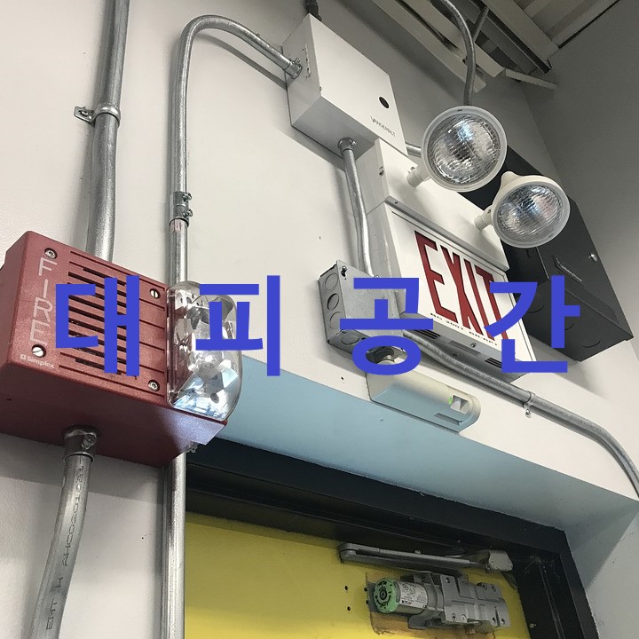 대피공간의 출입문은 항상 닫혀있거, 연기. 불꽃. 온도를 감지하여 자동으로 닫히는 구조로 하여야 합니다.