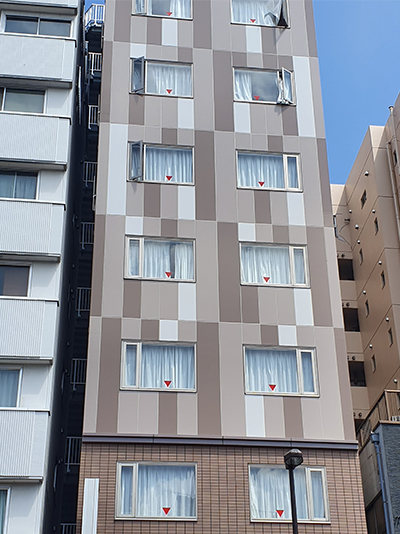5층 이상의 건물은 3층부터 31M까지 눈에 잘 띄는 곳에 소방관 진입창 표시 제도를 실시하고 있습니다.