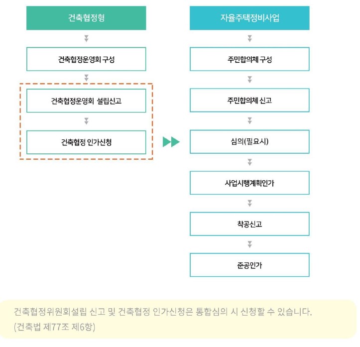 " 자율주택정비사업에 건축협정이 가능합니다. "