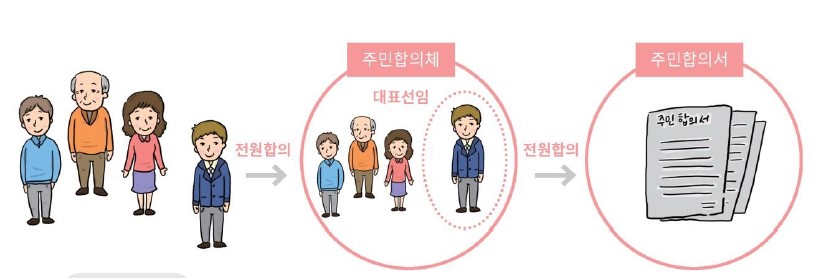 - 의사 결정은 주민합의체 전원의 합의가 있어야 합니다.