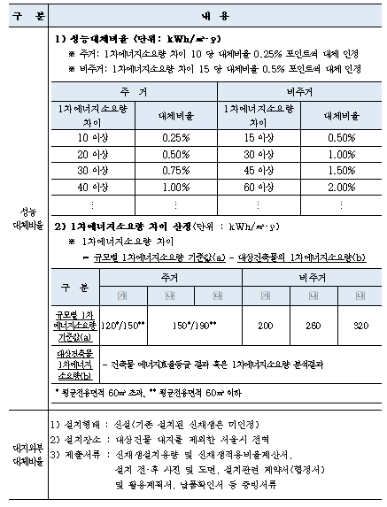 대체비율은 규모별 설치비율의 최대 50% 미만까지 인정