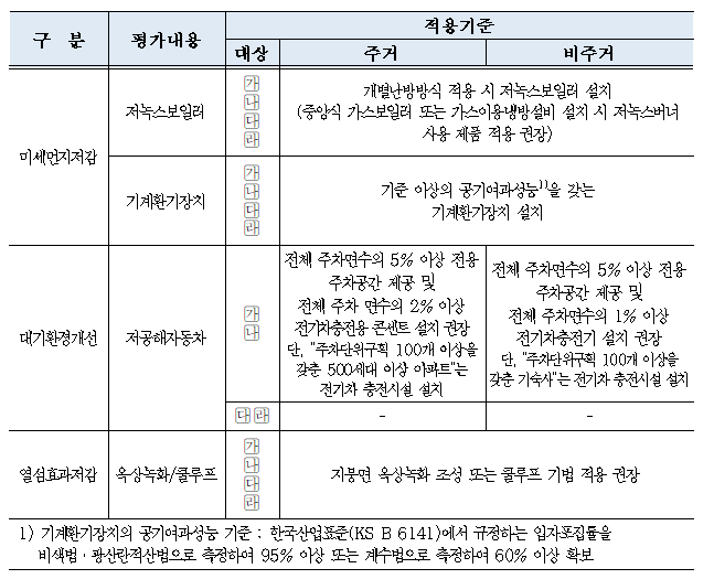 가. 적용대상: 「건축물의 에너지절약설계기준」(국토교통부고시) 적용 대상인 다음에 해당하는 건축물