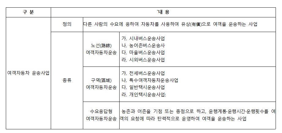 이 중 버스와 택시도 여객자동차에 포함됩니다.
