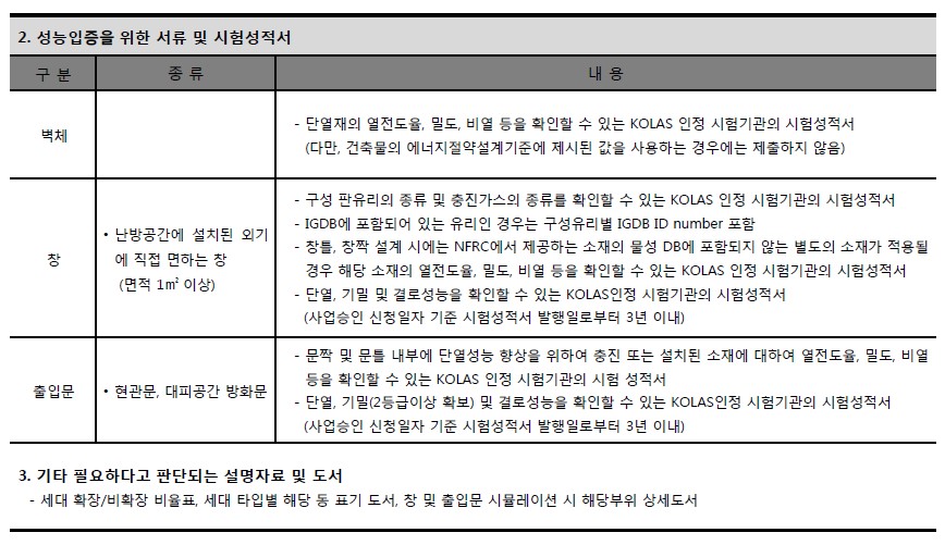- 성능평가기관에서 발급받은 별지 제1호 서식의 공동주택 결로방지 성능평가결과서를 사업계획승인권자에게
