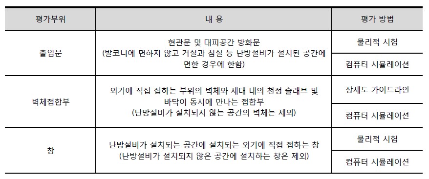 " 주요 부위별 결로방지 성능평가 방법 "
