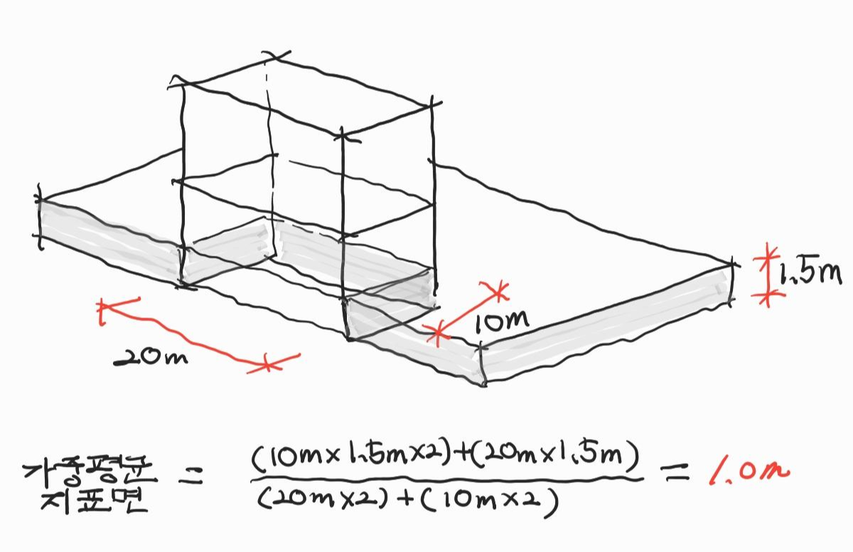 가중평균한 높이의 수평면을 지표면으로 산정한다.
