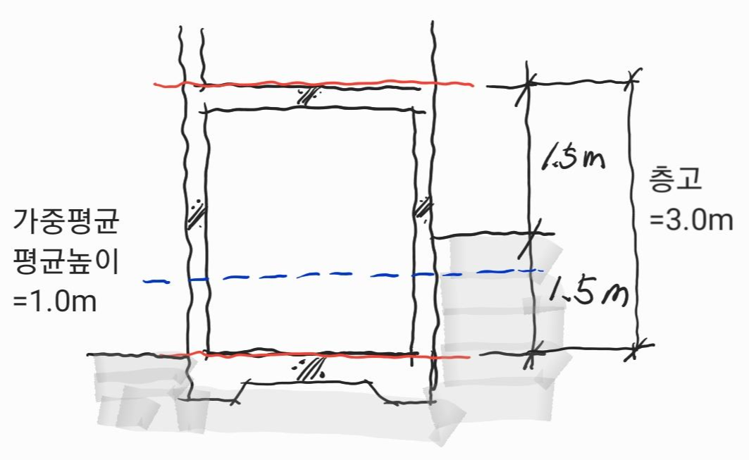 쉽게 지표면과 층고의 1/2 높이를 산정해