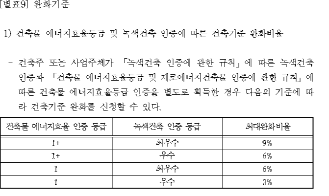 - 완화기준을 적용받은 건축주(사업주체)는 건축물의 사용승인 신청 이전에 본인증을 득하여합니다.