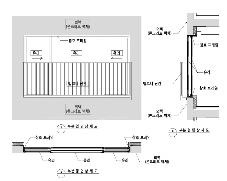 그런데 이런 일반 아파트 발코니 및 외부 창호의 형태가 아닌