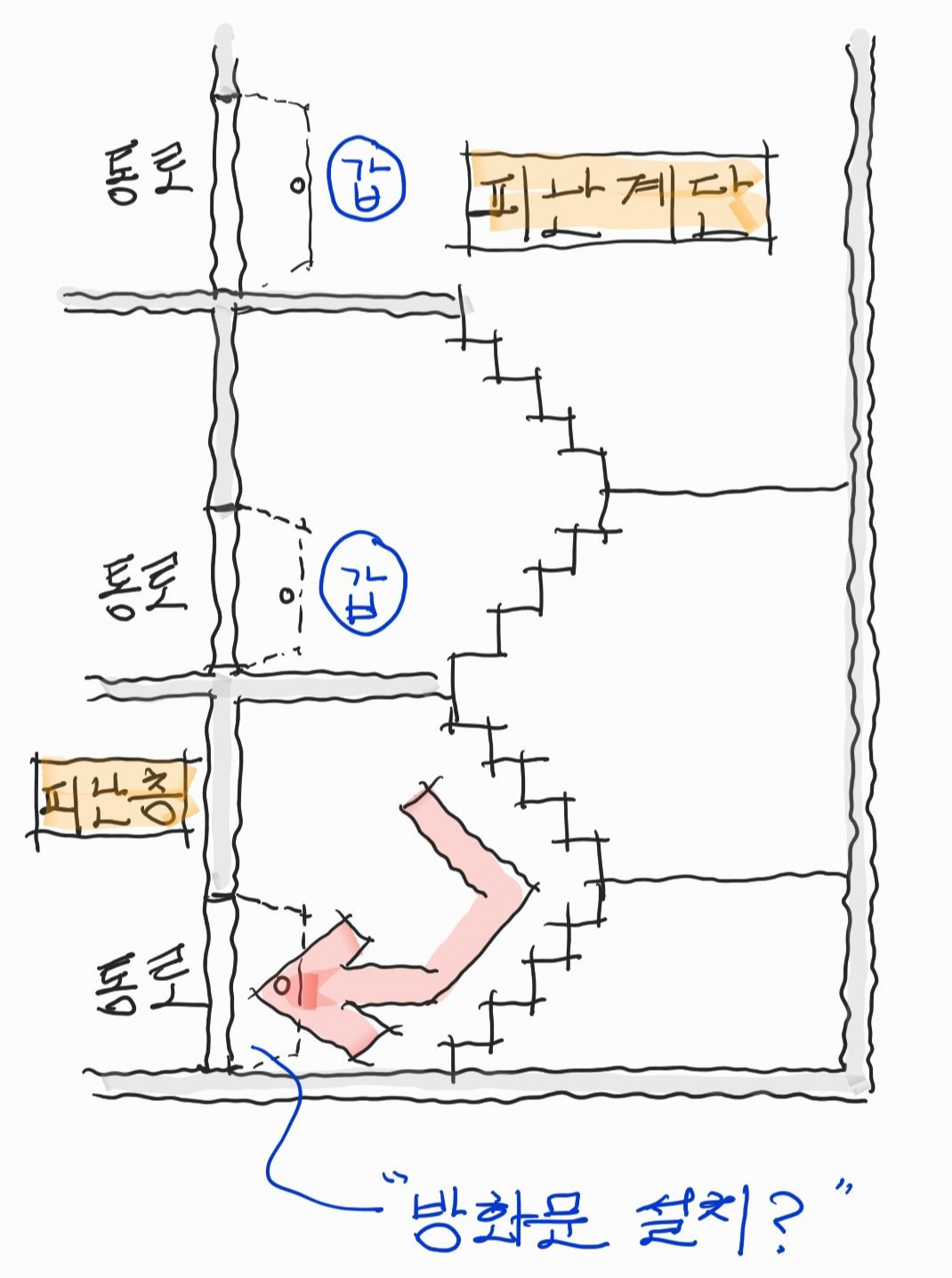 그런데 피난계단의 피난층에 방화문이 필요할까요?