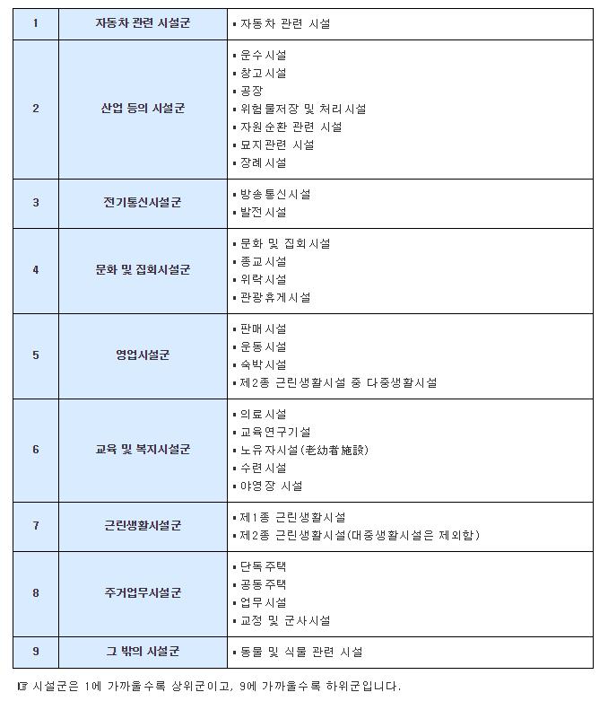 예외 시설을 명시함으로써 아래의 시설들은