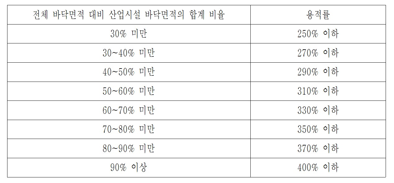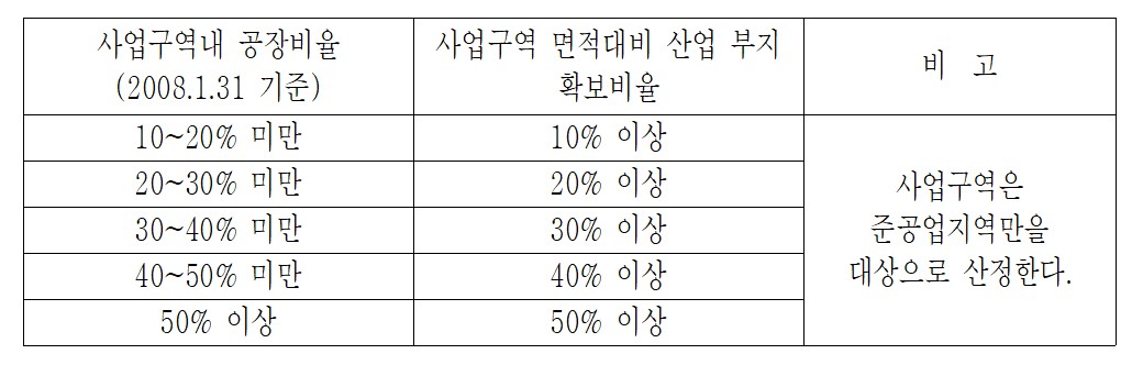 < 사업구역내 공장비율이 10% 미만인 경우 이를 적용하지 않음. >
