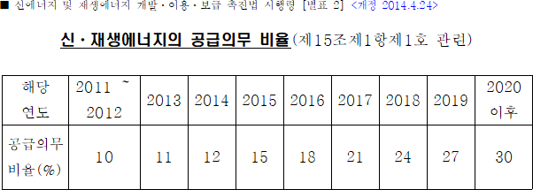 (1) 신ㆍ재생에너지 공급의무 비율: