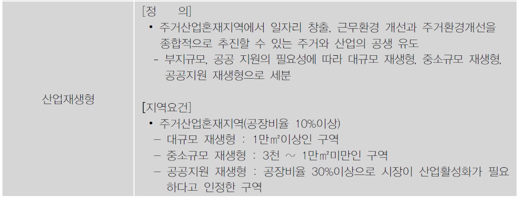 대규모 재생사업 추진 시 영세·토착산업의 수용,