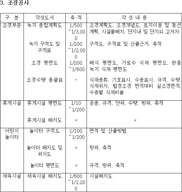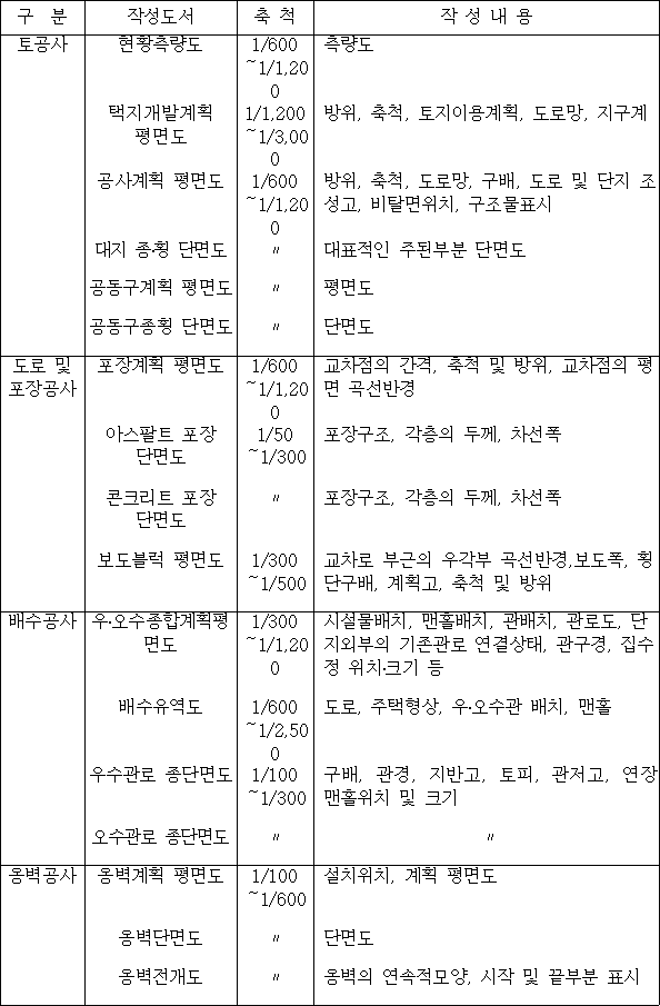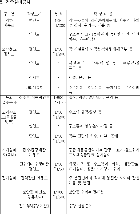 <별표 1 기본설계도면 작성내용 >
