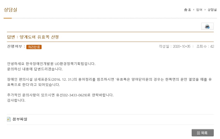 문을 통과하는 경우 그 통과유효폭을