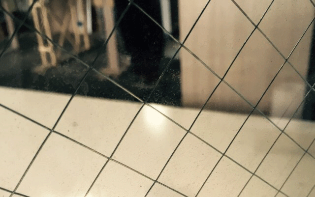 두꺼운 판 유리에 철망을 넣어