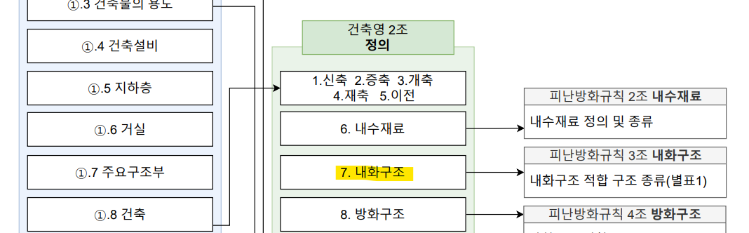| 건축법 시행령 제46조(방화구획 등의 설치) ① 법 제49조제2항에 따라 주요구조부가 내화구조 또는 불연재료로 된 건축물로서 연면적이 1천 제곱미터를 넘는 것은 국토교통부령으로 정하는 기준에 따라 내화구조로 된 바닥ㆍ벽 및 제64조에 따른 갑종 방화문(국토교통부장관이 정하는 기준에 적합한 자동방화셔텨를 포함한다. 이하 이 조에서 같다)으로 구획(이하 "방화구획"이라 한다)하여야 한다. 다만, 「원자력안전법」 제2조에 따른 원자로 및 관계시설은 「원자력안전법」에서 정하는 바에 따른다. <개정 2011. 10. 25., 2013. 3. 23.> |