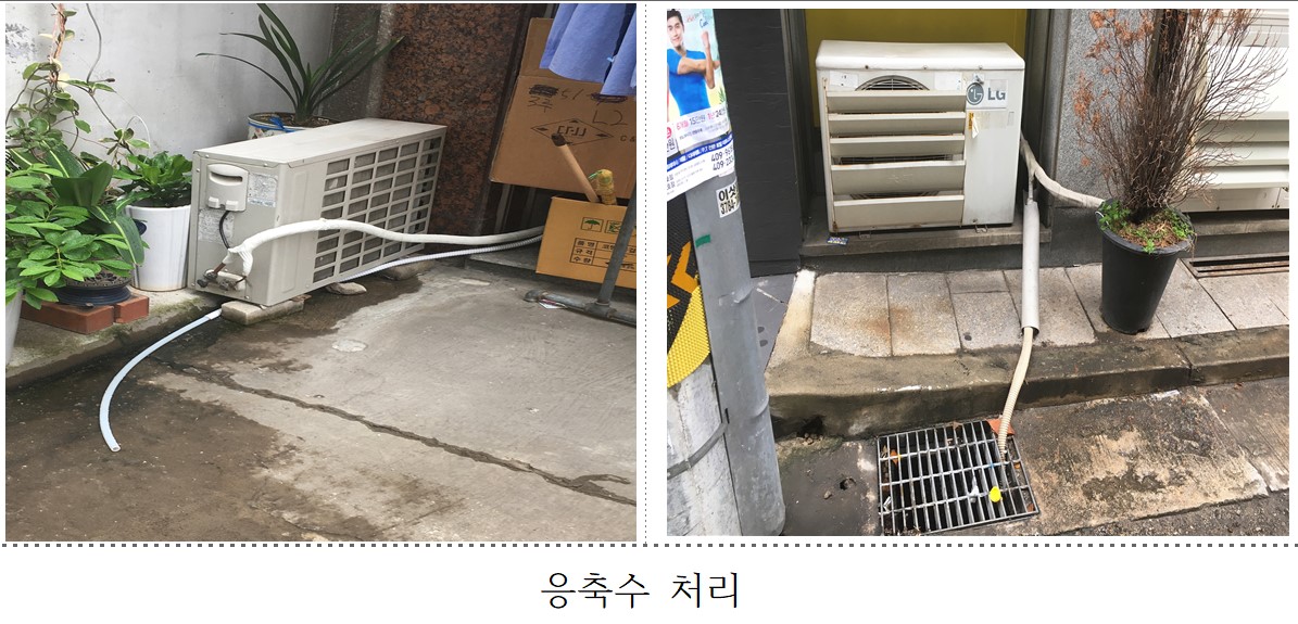 무질서한 실외기, 응축수·냉매 배관으로 인한 도시미관 저해