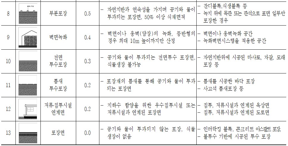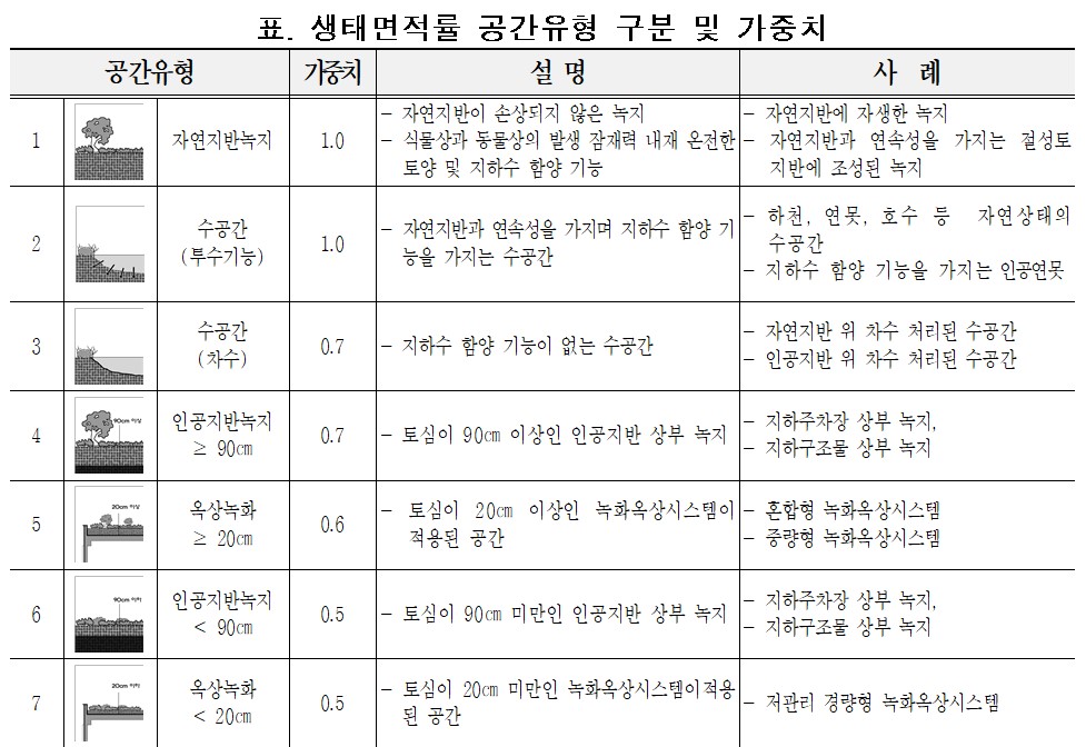 옥상녹화․투수포장 등에 대해 각각의 가중치를 부여하여