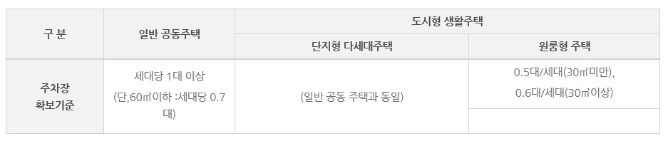 경계벽, 층간소음, 승강기, 복도 등 기타규정은 동일하게 적용됩니다.
