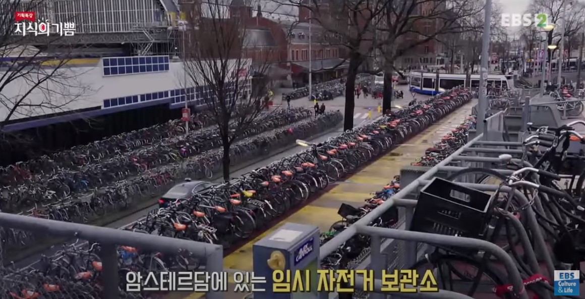 암스테르담에 있는 임시 자전거 보관소에는