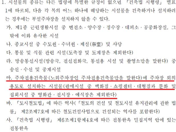 부설주차장 면제 예외