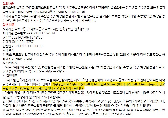 이에 국토교통부에서는 아래 첨부와 같은 회신 하였습니다.