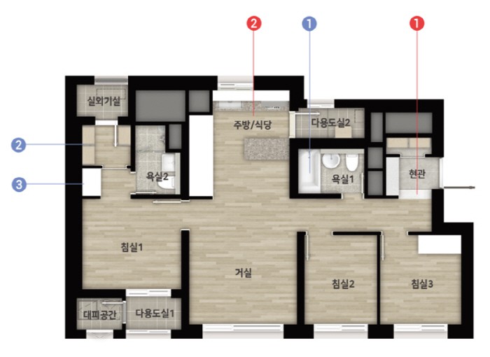 아니며 거실. 침실 뿐만 아니라 주방.식당, 화장실, 발코니 등을