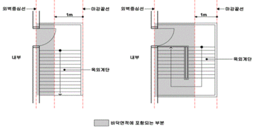 외부계단의 바닥면적은 벽. 기둥 등의