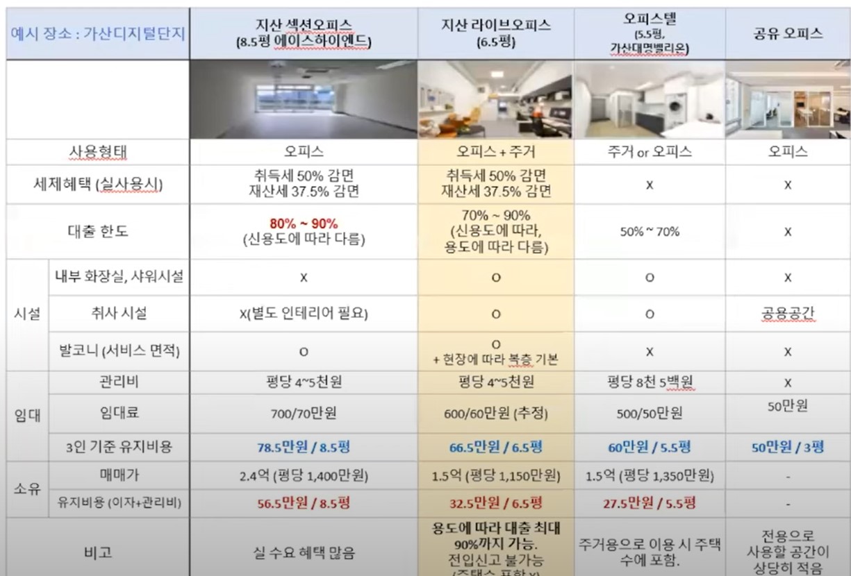 1. 용도상 지식산업센터(사무공간)