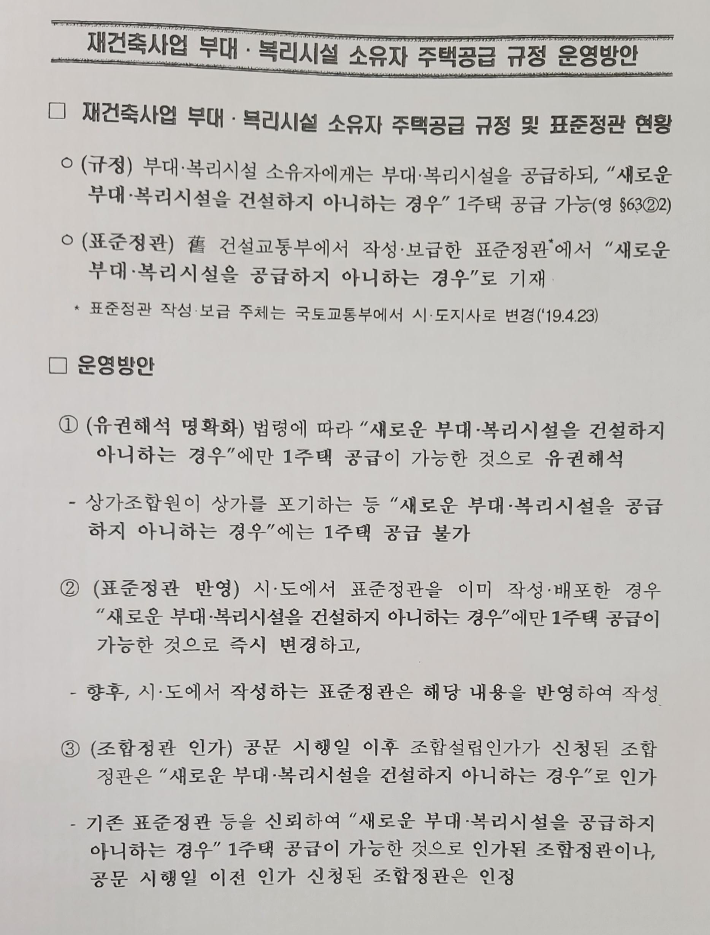 1주택 공급이 가능토록 운영방안을 내놓았습니다.