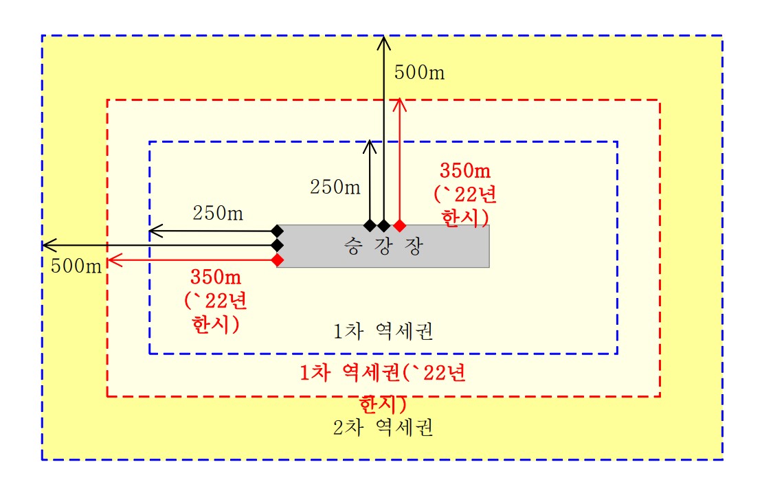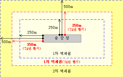 각 승강장 경계로부터 350미터 이내의 지역을 말한다.