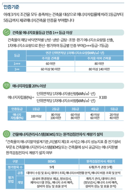 지속적인 정부의 에너지절감 노력은 2025년에는 민간 건축물 특히 공동주택에도 '제로에너지 건축물' 인증 의무 시행을 예고할 만큼 드라이브를 걸고 있는 상태입니다.