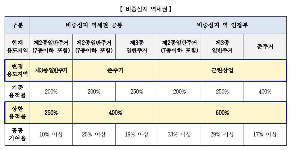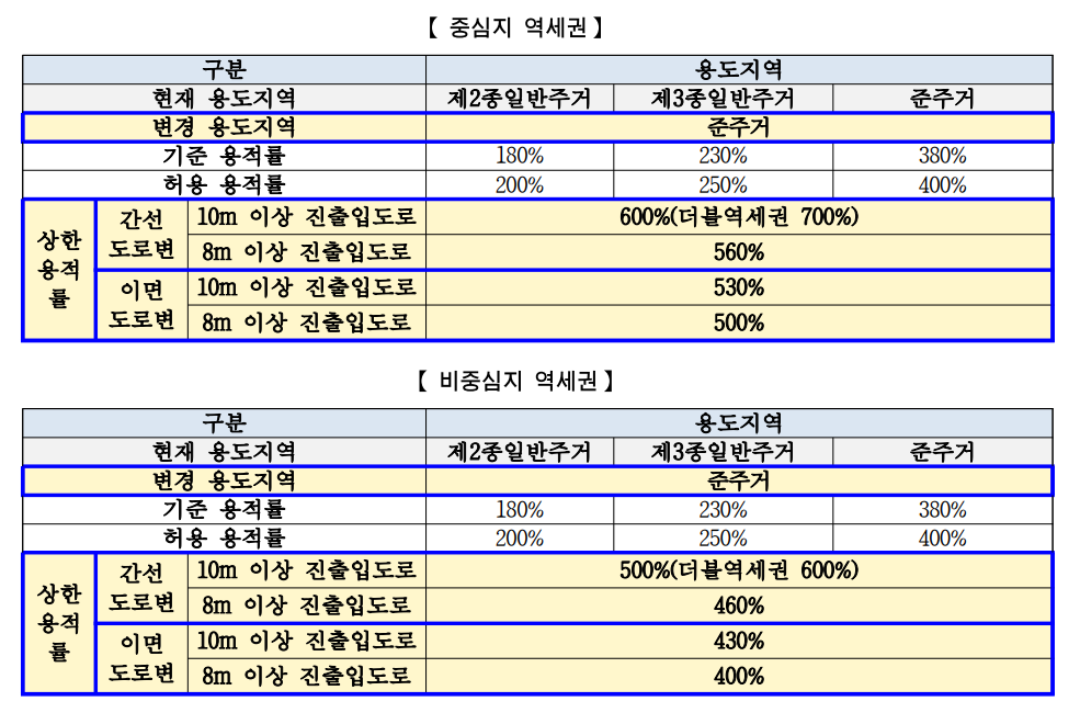 □ 1차 역세권만 용도지역 상향 가능